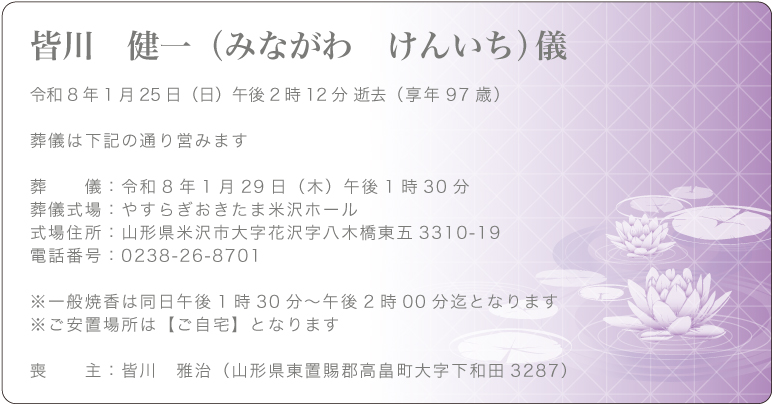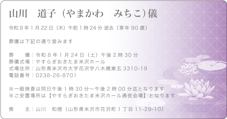 当社にご葬儀をご用命いただきましたお客様の訃報を掲載しております。