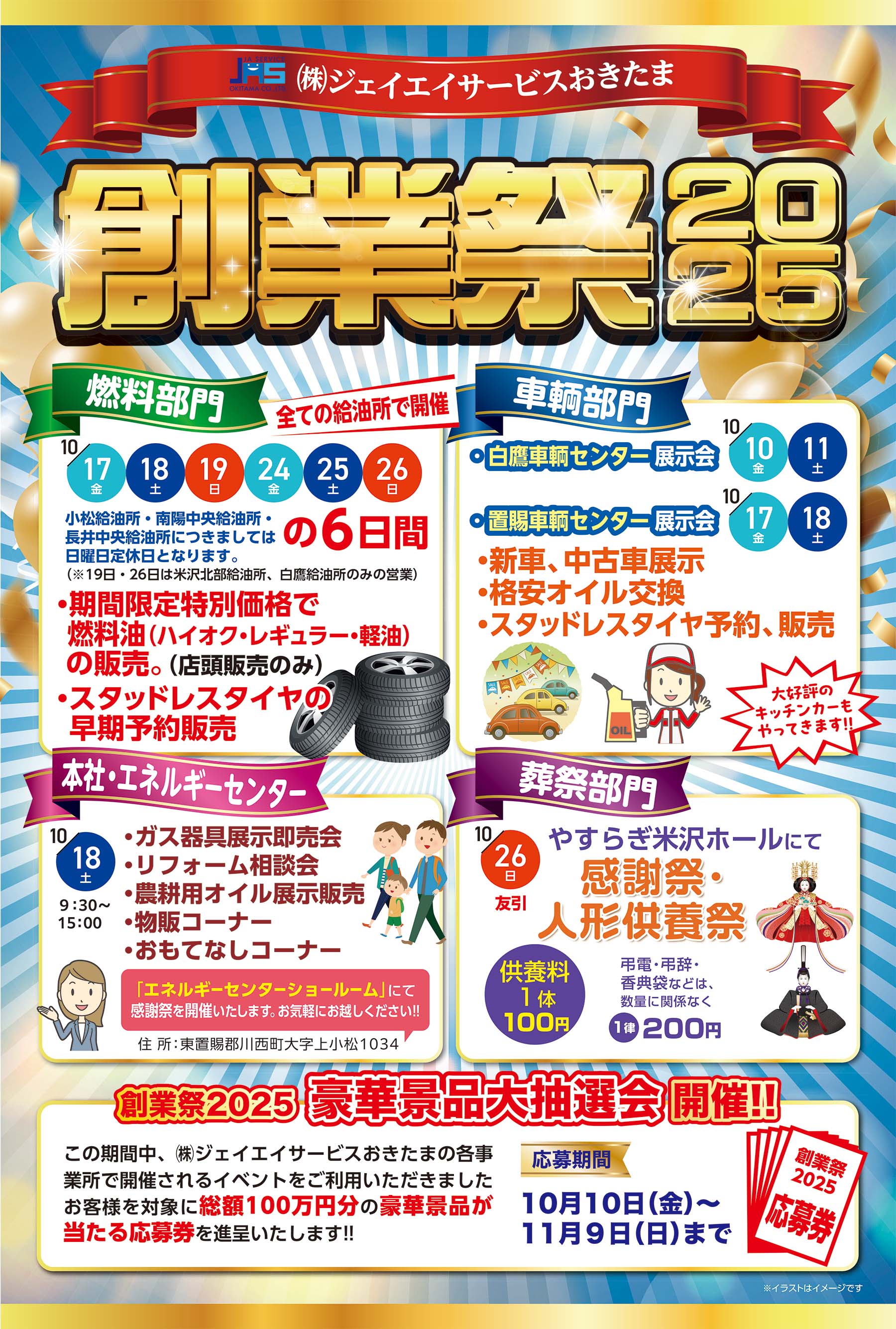 (株)ジェイエイサービスおきたま 創業祭2025開催のお知らせ (2025.09.18)